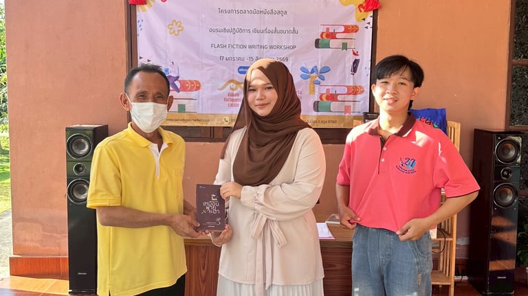 คัดเลือกจากผลงานนักเรียนที่เข้าร่วมกิจกรรม อบรมเขียนเรื่องสั้นขนาดสั้นทั้ง 4 ครั้ง